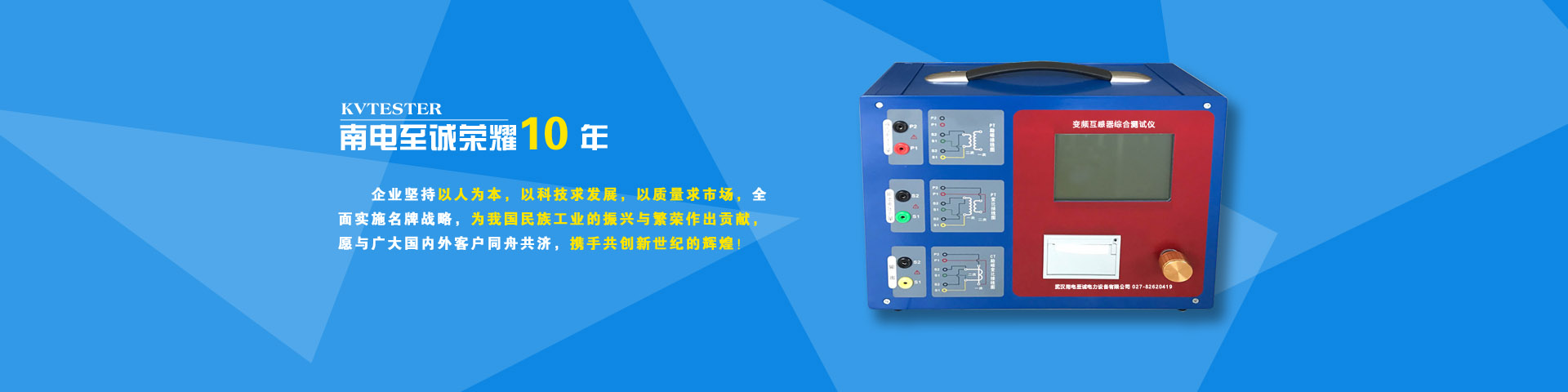 武漢南電至誠電力設(shè)備有限公司是一家專業(yè)從事電力、電氣測(cè)試設(shè)備,集研發(fā)、生產(chǎn)、經(jīng)營于一體的企業(yè)。公司擁有雄厚的技術(shù)人才,并通過與武漢各大院校、科研院所的廣泛合作,向全國電力行業(yè)提供大量的優(yōu)質(zhì)產(chǎn)品與完善的售后服務(wù)。 公司以產(chǎn)品質(zhì)量為企業(yè)的生命。以市場(chǎng)為導(dǎo)向,以滿足用戶為主題,以優(yōu)質(zhì)的服務(wù),合理的價(jià)格,深得廣大用戶贊譽(yù)。公司的產(chǎn)品研發(fā)團(tuán)隊(duì)由多年從事電力產(chǎn)品開發(fā)的研發(fā)工程師組成,產(chǎn)品開發(fā)以相關(guān)行業(yè)標(biāo)準(zhǔn)和規(guī)程為依據(jù),充分利用微電腦技術(shù),實(shí)現(xiàn)產(chǎn)品的高智能化,使現(xiàn)場(chǎng)工作更輕松,更方便,更簡(jiǎn)單。同時(shí)被經(jīng)貿(mào)委列為城鄉(xiāng)電網(wǎng)建設(shè)和改造推薦企業(yè),企業(yè)產(chǎn)品已在我國電力、煤礦、石油、化工、冶金、建筑、鐵路、通信、國防等部門得到廣泛的應(yīng)用。研發(fā)的高電壓試驗(yàn)設(shè)備和電氣設(shè)備測(cè)試儀器受到了用戶的青睞。公司主導(dǎo)產(chǎn)品:微機(jī)繼電保護(hù)測(cè)試系統(tǒng)、串聯(lián)諧振試驗(yàn)成套裝置、交直流輕型高壓試驗(yàn)變壓器、變壓器容量及空載負(fù)載特性測(cè)試儀、變壓器變比組別測(cè)試儀、接地線成阻直流電阻測(cè)試儀、回路電阻測(cè)試儀、漏電保護(hù)測(cè)試儀、直流高壓發(fā)生器、高壓開關(guān)動(dòng)特性測(cè)試儀、氧化鋅避雷器測(cè)試儀、三倍頻耐壓裝置、大電流發(fā)生器、多功能電能表現(xiàn)場(chǎng)校驗(yàn)儀、互感器檢測(cè)裝置等產(chǎn)品,高智能、自動(dòng)化、體積小、重量輕、結(jié)構(gòu)合理、功能完備為特點(diǎn),通過部門的檢測(cè)和鑒定,是電網(wǎng)建設(shè)和改造的推薦產(chǎn)品?! ∑髽I(yè)堅(jiān)持以人為本,以科技求發(fā)展,以質(zhì)量求市場(chǎng),全面實(shí)施戰(zhàn)略,為我國民族工業(yè)的振興與繁榮做出貢獻(xiàn),愿與廣大國內(nèi)外客戶同舟共濟(jì),協(xié)手共創(chuàng)新世紀(jì)的輝煌!歡迎各界新老朋友前來參觀指導(dǎo)、洽談業(yè)務(wù)!